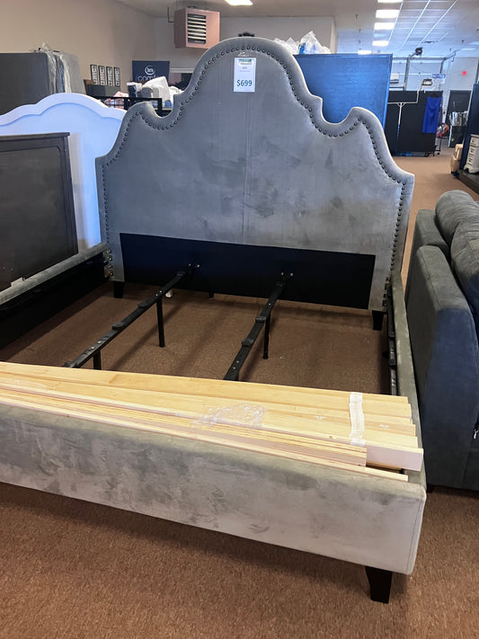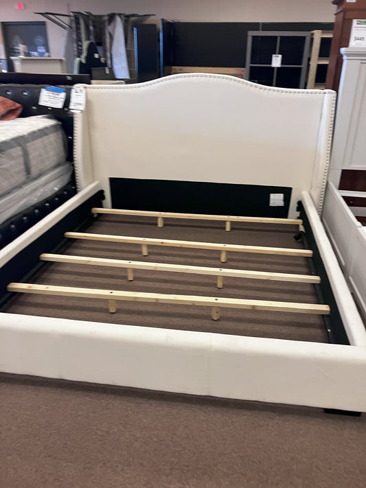 *Antique White Polyester Upholstered Panel Bed Cal King