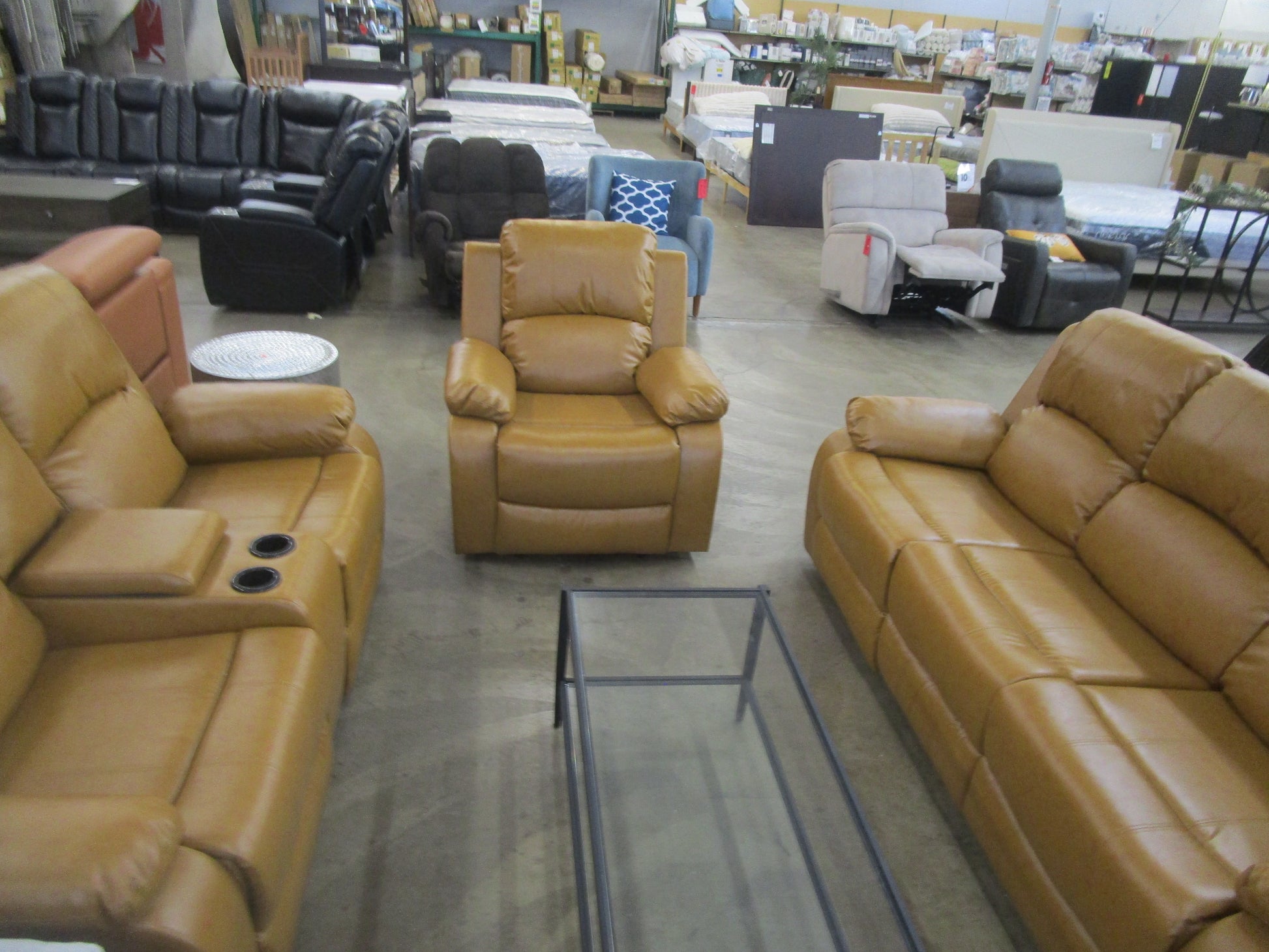 Leather Recliner Sofa Set 3 PCS Motion Sofa Loveseat Recliner Sofa Recliner Couch Manual Reclining Chair for Living Room (3 Piece Set) (Ginger)