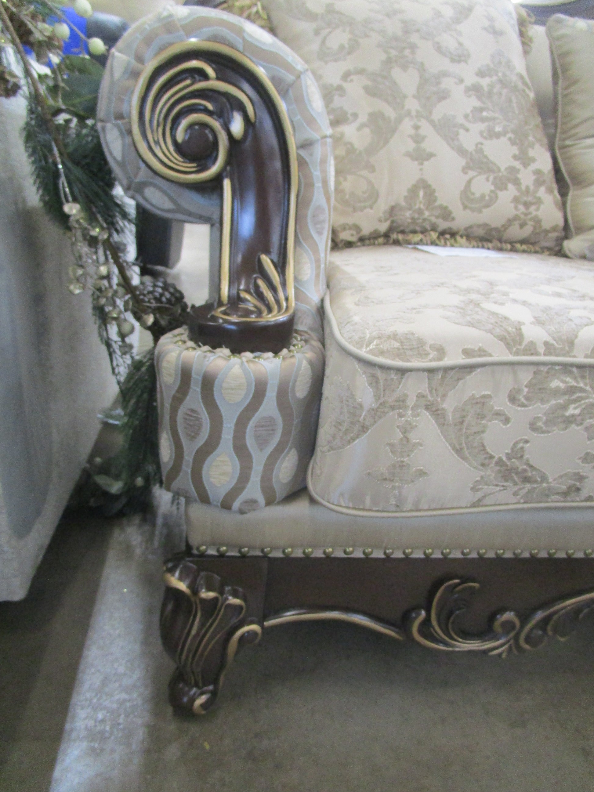 Homelegance batlthasa brown ornate sofa w/5 pillows
