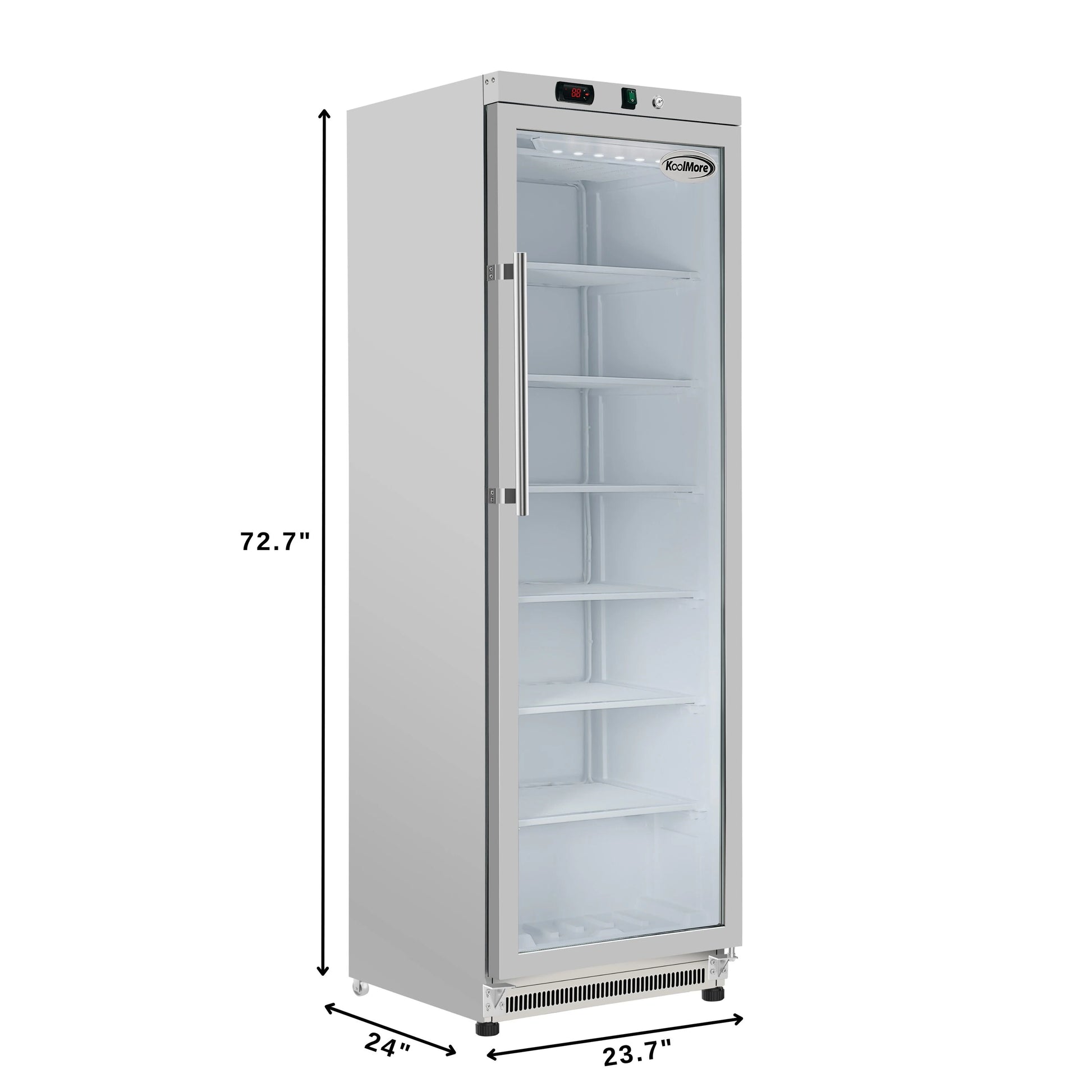 The Koolmore 12 Cu. ft. Commercial Freezer with Glass Door in stainless steel combines robust refrigeration performance with sleek design ideal for commercial environments. Its spacious interior offers ample storage capacity, while the clear glass door allows easy product visibility without compromising temperature control. Crafted with durable stainless steel, this freezer ensures long-lasting reliability and easy maintenance. Perfect for restaurants, convenience stores, and food service operations, it maintains consistent freezing temperatures to preserve product quality efficiently.