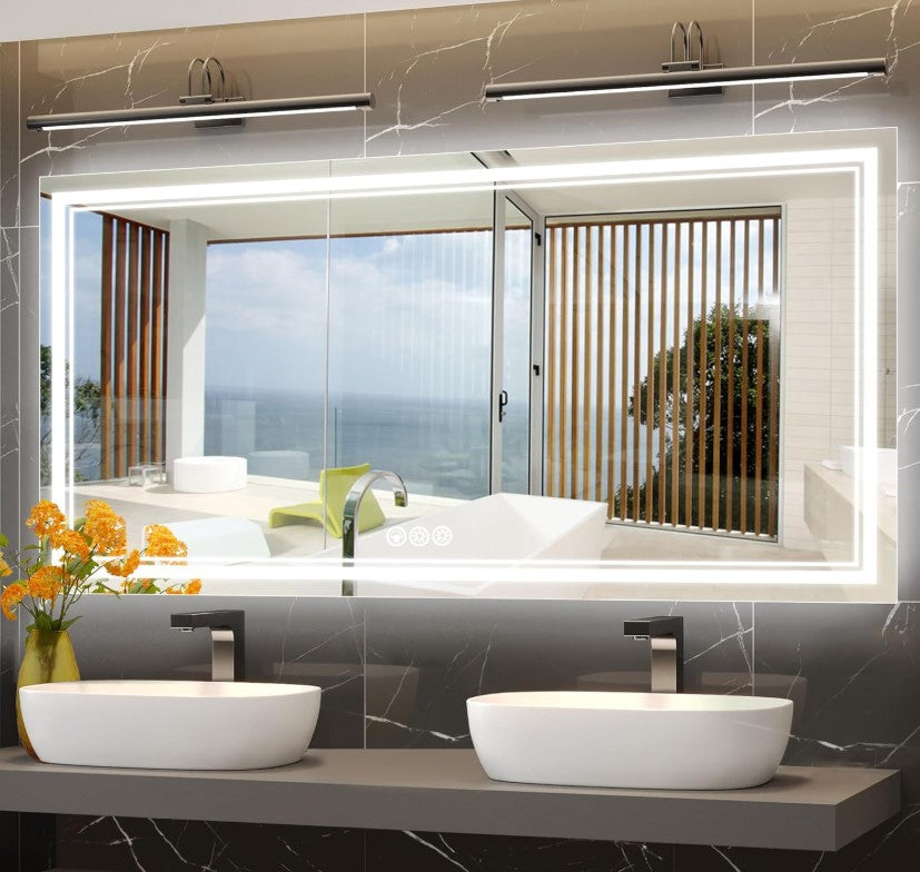 Ratsamee 84 in x 40 in led mirror for bathroom with front light and backlit, dimmable antifog wall bathroom mirror with led lights, waterproof, decor vanity.