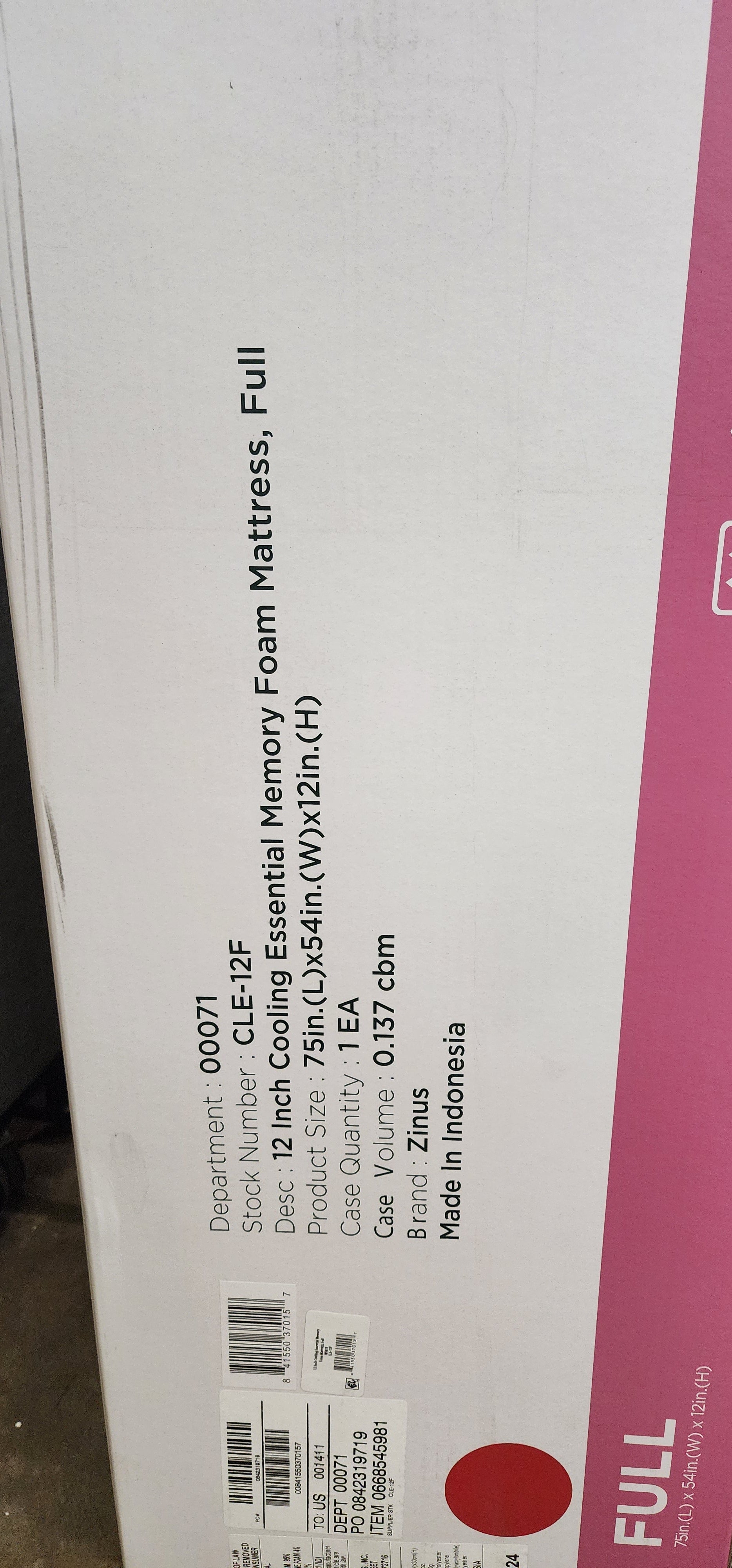 Zinus 12 inch cooling essential memory foam mattress, full.
