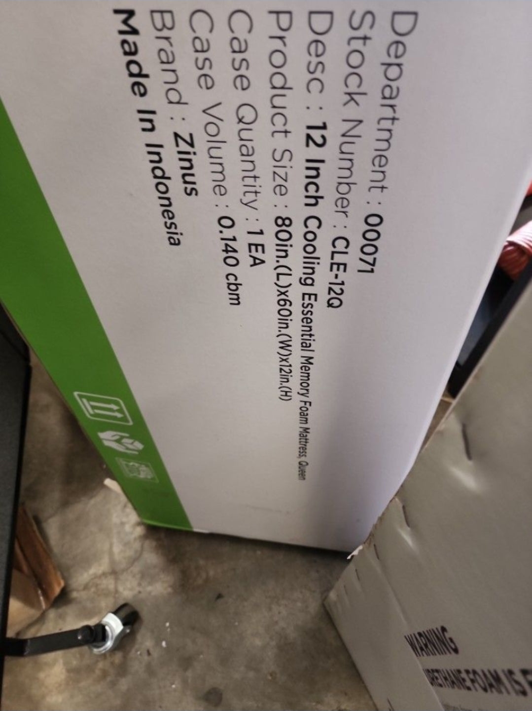 zinus 12 inch Cooling essentual memory foam mattress, Queen.